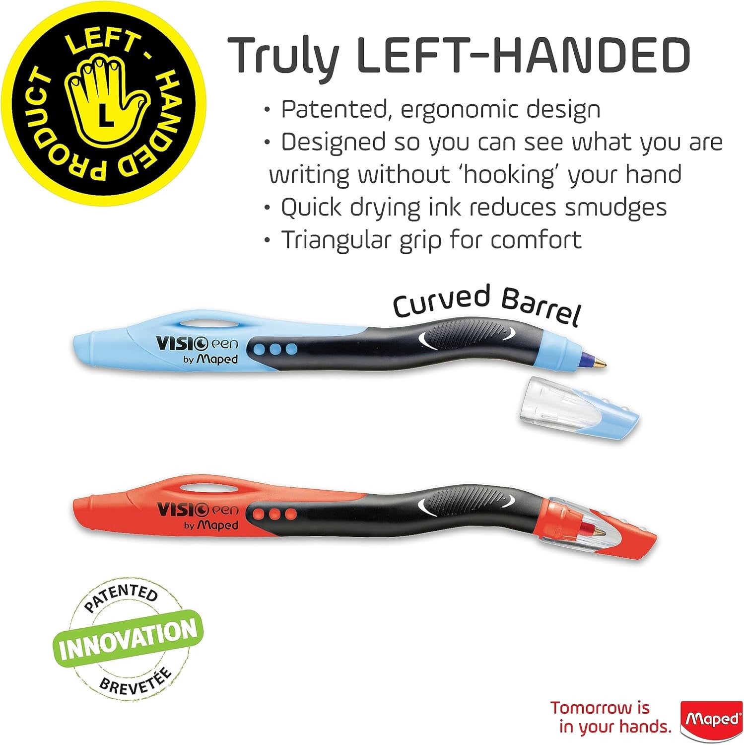 Maped - Visio Left-Handed Quick-Drying Ballpoint Pen - 3 Pack - Writing Notes - Left-Handed Design - Quick-Drying Ink for Smudge-Free Writing - Comfortable Grip, Versatile Colors
